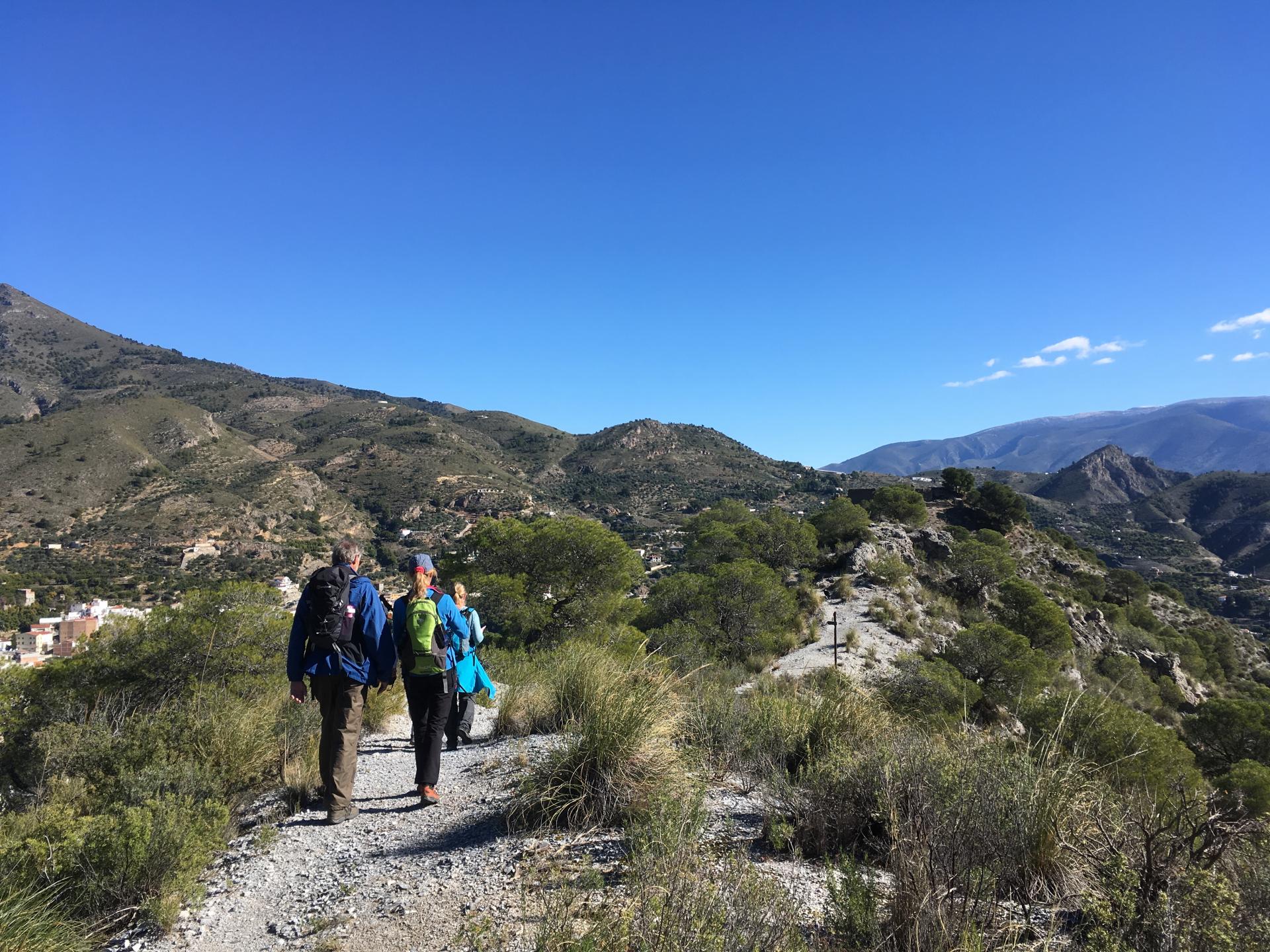 Vandring. Vi gör dagligen korta vandringar i närmiljön men i varierande typ av terräng för att belasta muskler och andning i olika grad. Ibland går vi längs stranden, ibland i trappor. Almuñécar är byggt på kullar och längs floddaler och ger goda möjligheter för olika typer av rutter. Oavsett var vi vandrar stannar vi alltid för att njuta av underbara havs- och bergsutsikter, blomstrande trädgårdar och fruktodlingar.